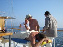 An Bord ist auch eine Naturtherapeutin, die gegen Aufpreis Bachblütenberatungen und spezielle Energiemassagen durchführt.